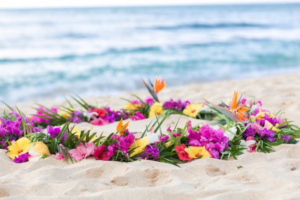 • 2 beautiful Hawaiian wedding flower leis & traditional Hawaiian lei exchange (a $60 value)