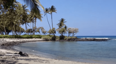 The "Old Airport Beach Park" is a beautiful three and a half mile long beach park and the closest near Kona. Just a few minutes from Alii Drive use Kuakini Hwy North to the beach park entrance. Drive to the end and see the romantic sandy cove with palms and great ocean vistas. See more pictures HERE and find it on Google Maps HERE.